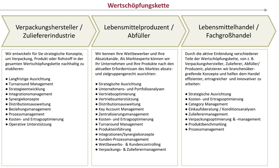 Strategische und operative Managementberatung mit Fokus auf die LebensmittelindustrieUnser Beratungssektor für die Lebensmittelbrache ist das Herzstück unseres Unternehmens. Mit guten Ideen, einfachen und soliden Konzepten liegt die Kernaktivität der CIS in der Optimierung oder im Ausbau der nationalen und internationalen Geschäftsentwicklung. Sie können uns beispielsweise als wichtige Know-how-Stabstelle für Ihre Expansion einsetzen oder wir gestalten und verbessern die wichtigsten Marktschnittstellen und Kundenprozesse der tangierenden Teilorganisationen. |